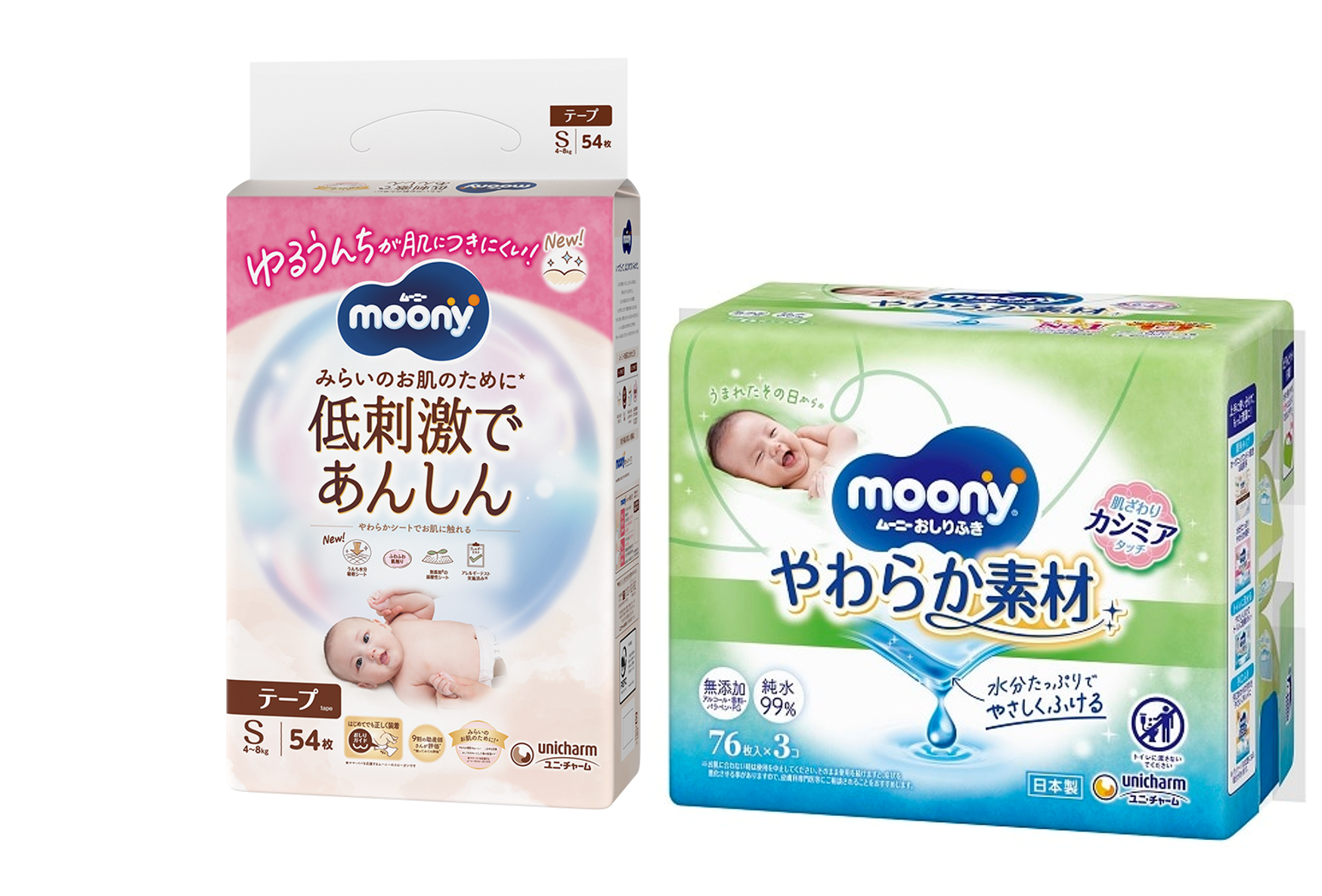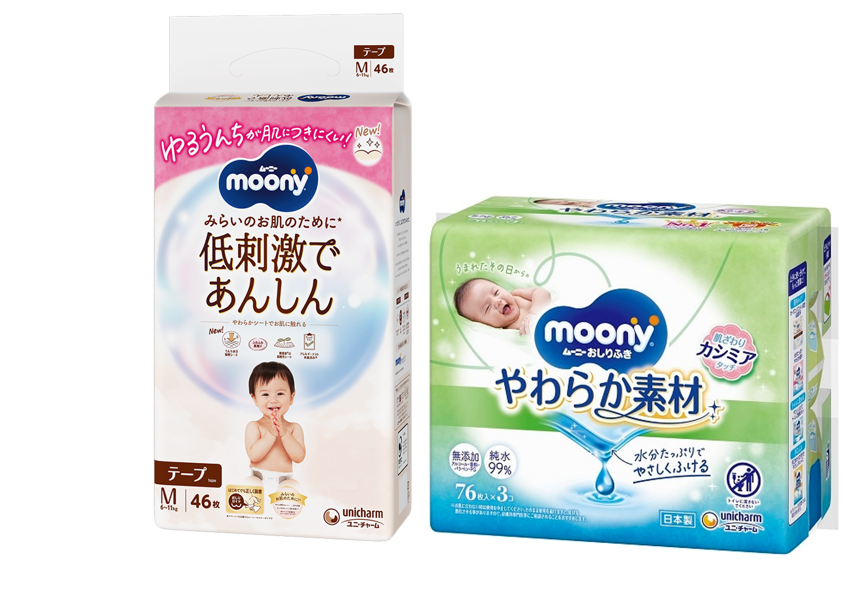 改良した2層の「うんち水分吸収シート」が肌側の水分を非肌側へ引き込むので、ゆるうんちの水分を吸収し、肌への付着・広がりを低減!